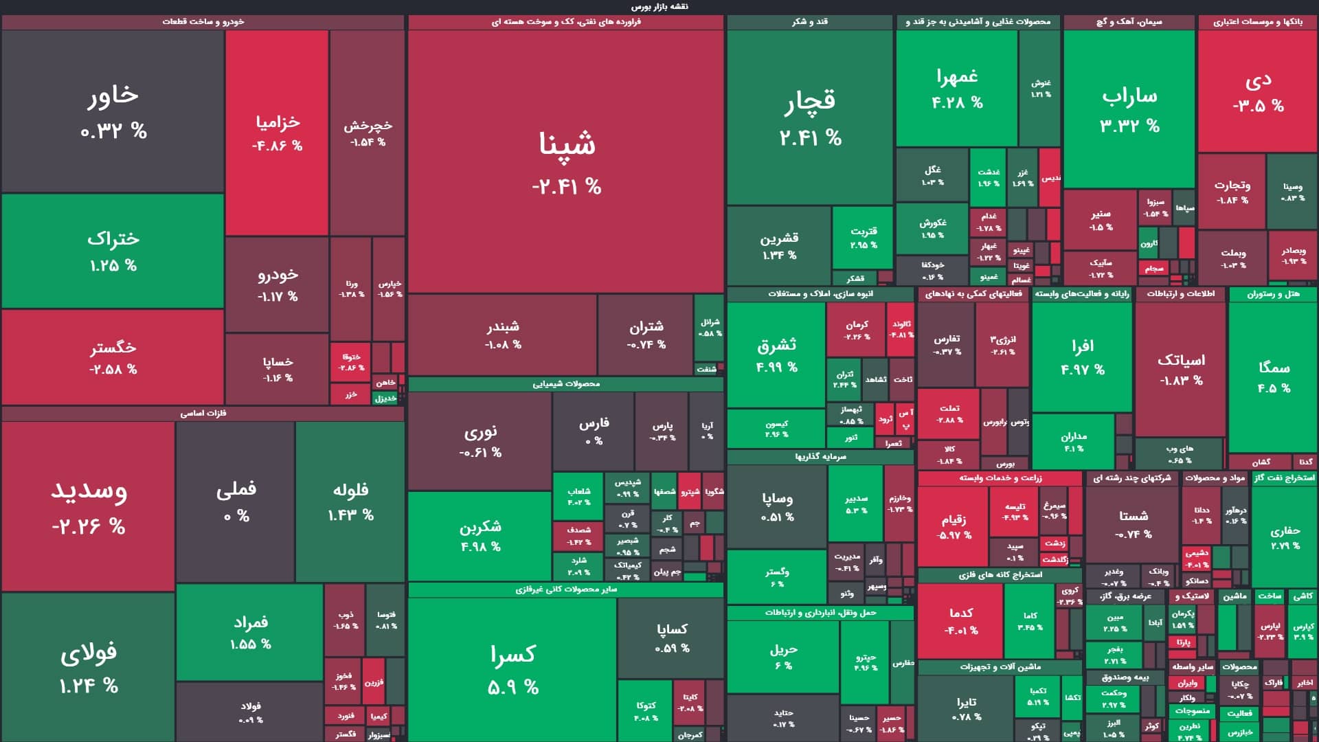 آخرین قیمت ۳۷نماد حداقل سه درصد نسبت به قیمت روز قبل آنها افزایش یافته و ۴۹نماد با کاهش بیش از سه درصدی قیمت همراه بودهاند.